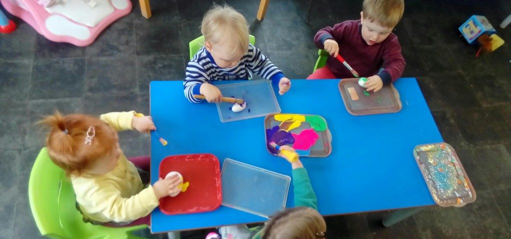 The children have started their Easter craft which of course they were all so excited about doing! They all showed very good control when holding an object and then painting it with the other hand, so expect their hands to be a little messy with paint.