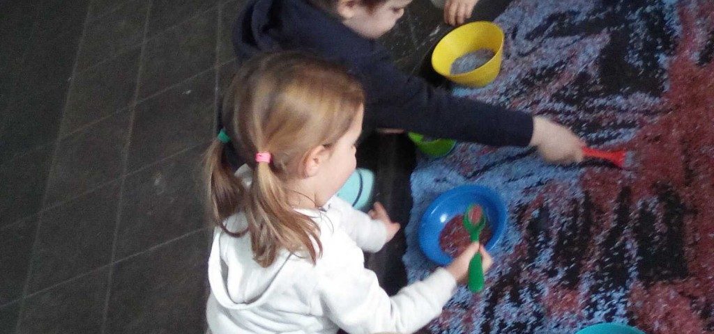 Last week our Busy Birds have also been doing some exploring of textures. Emily made some coloured rice which have the children a great chance to practice filling and emptying and exploring colours and descriptive words.